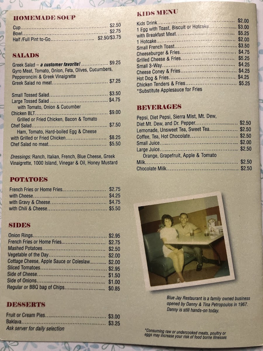 Blue Jay Restaurant Menu